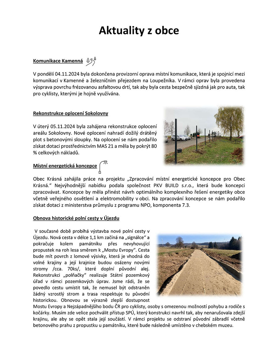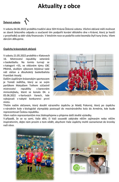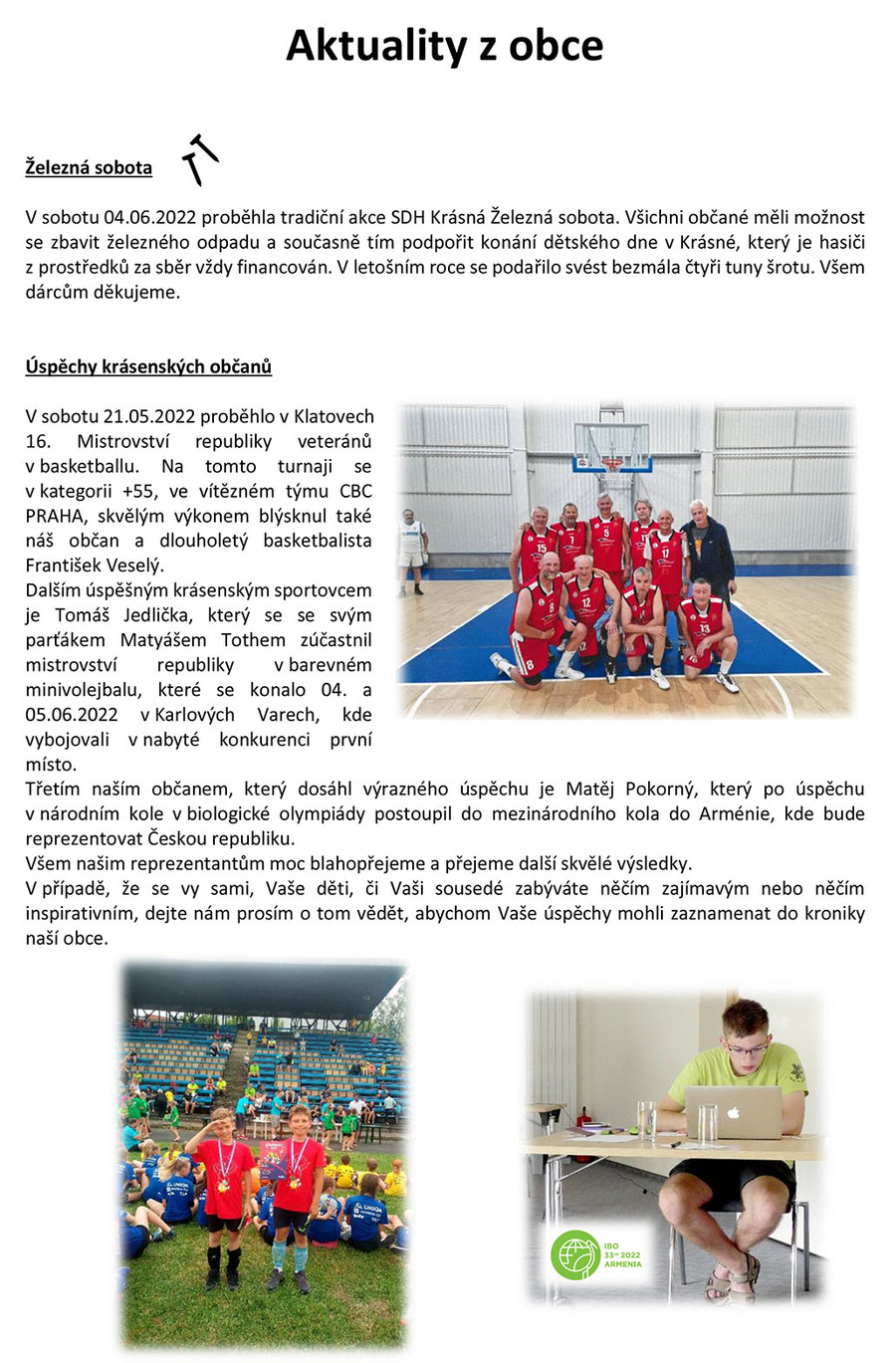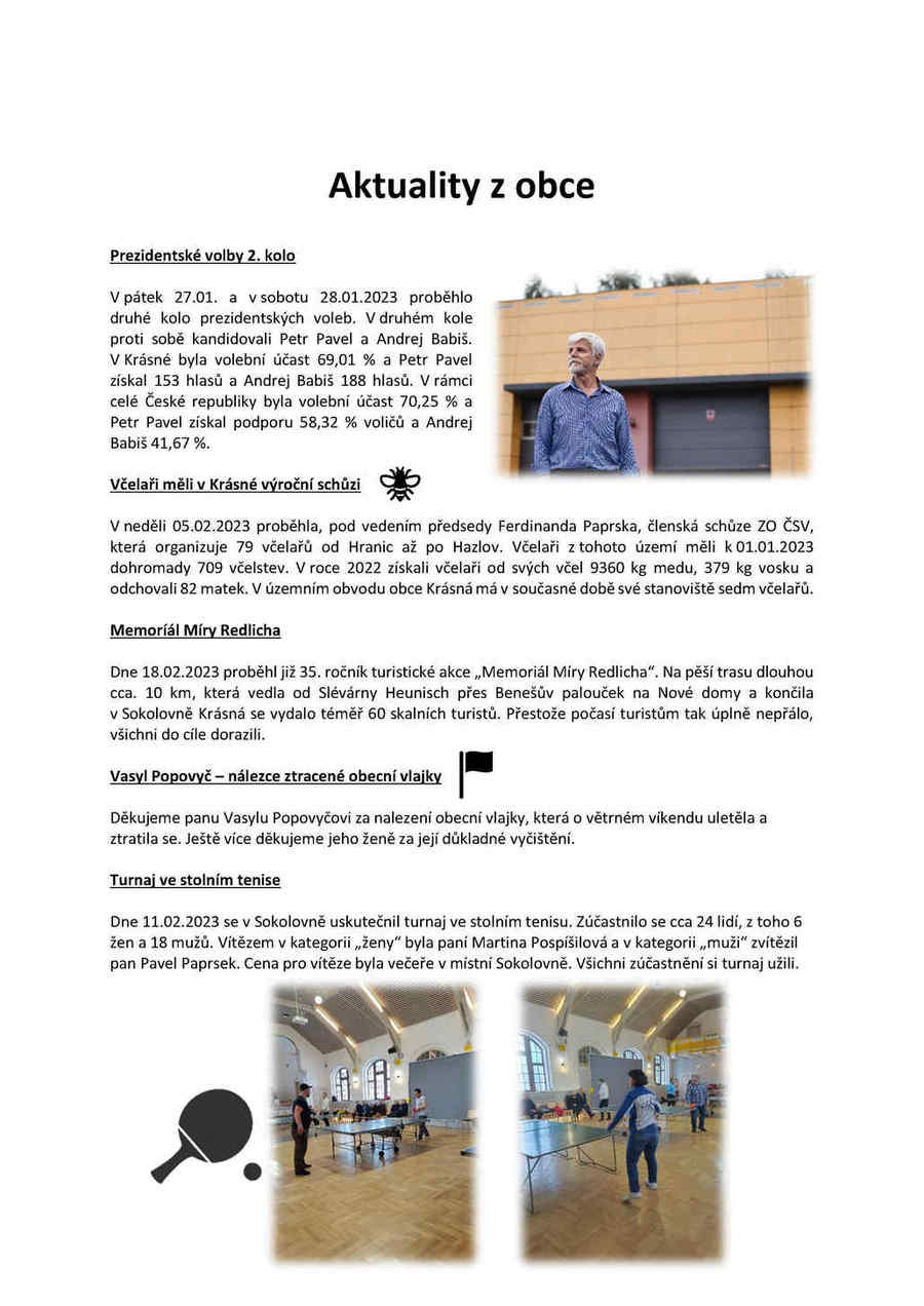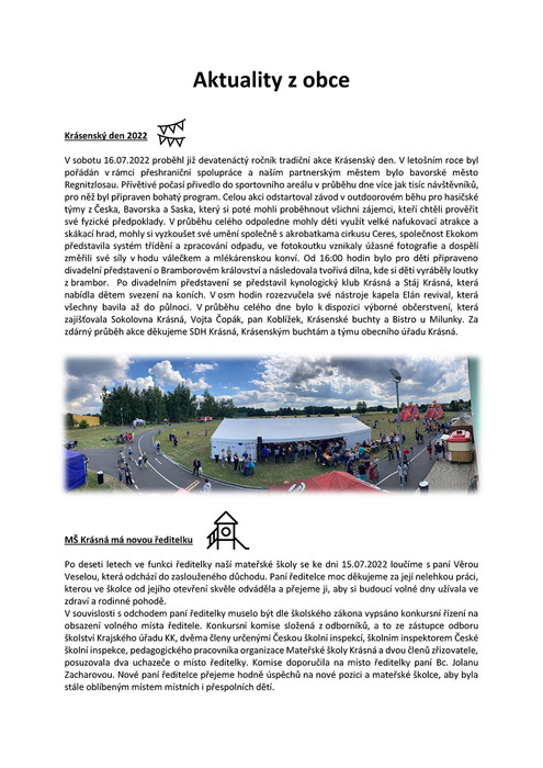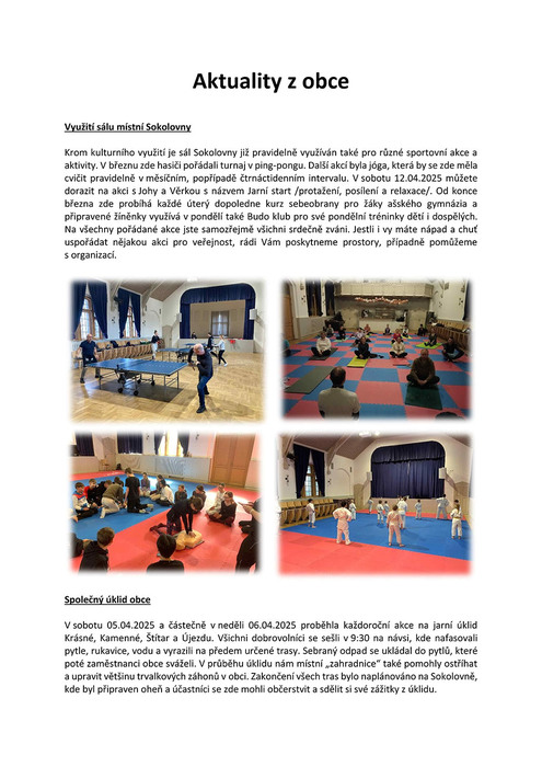 V sobotu dne 23. 4. 2022 se na Krásenské návsi sešlo, i přes velký počet omluvenek z důvodu nemoci, více než 30 dobrovolníků, kteří vyrazili na jarní úklid Krásné a širokého okolí. V rámci úklidové akce byl proveden úklid také v Újezdě, Štítarech a Kamenné osadě. Bylo sebráno skoro půl tuny odpadu a více jak 20 pneumatik. Již o den dříve se do úklidu zapojila naše mateřinka, která uklidila sportovní areál a veřejné pozemky přiléhající k mateřské škole. Dalšími brigádníky, kterým není naše příroda lhostejná jsou děti z Jezdeckého klubu Krásná, které si vzaly na starost les podél komunikace do Dolní Krásné. Celá akce byla ukončena v místní Sokolovně, kde mohli všichni doplnit energii připraveným jídlem a pitím. Děkujeme moc všem, kteří přišli pomoc a budeme věřit, že příští rok už nebudeme mít co uklízet.