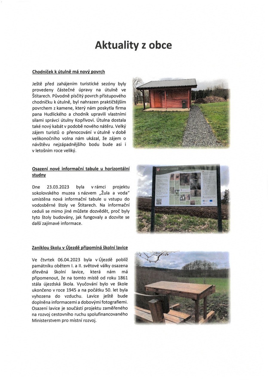 V sobotu dne 23. 4. 2022 v průběhu úklidu obce byla provedena také oprava střech na stáncích na návsi a na odpočívadle před Sokolovnou, které byly poničeny v minulosti při silném větru. Za provedení opravy děkujeme panu Jiřímu Mitáčkovi a panu Luďovi Čavinskému.
