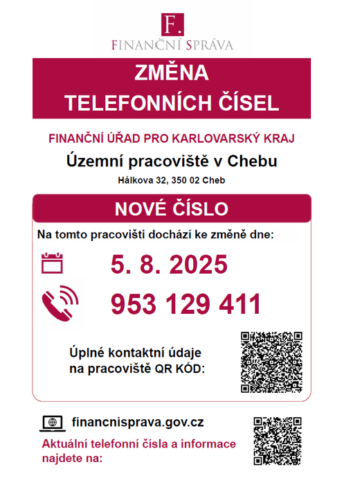 Úvod > Obec Krásná > Nástěnka > Finanční úřad Cheb - nové telefonní číslo